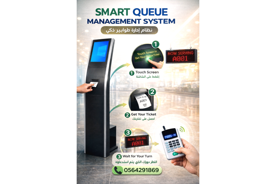 طباعة ارقام العملاء,ترتيب الطابور,queue system,نظام انتظار العملاء,نظام تنظيم الصفوف,نظام الطابور,