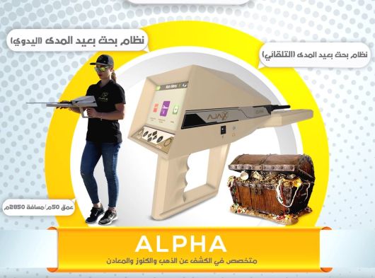 جهاز AJAX ALPHA (أجاكس ألفا) هو جهاز كشف استشعاري بعيد المدى يتميز بدقة عالية في التنقيب عن الذهب، الكنوز، المعادن والقطع الأثرية. يعتمد على معالجة البيانات الرقمية وتحويلها إلى نتائج مرئية وسمعية وصوتية واضحة.